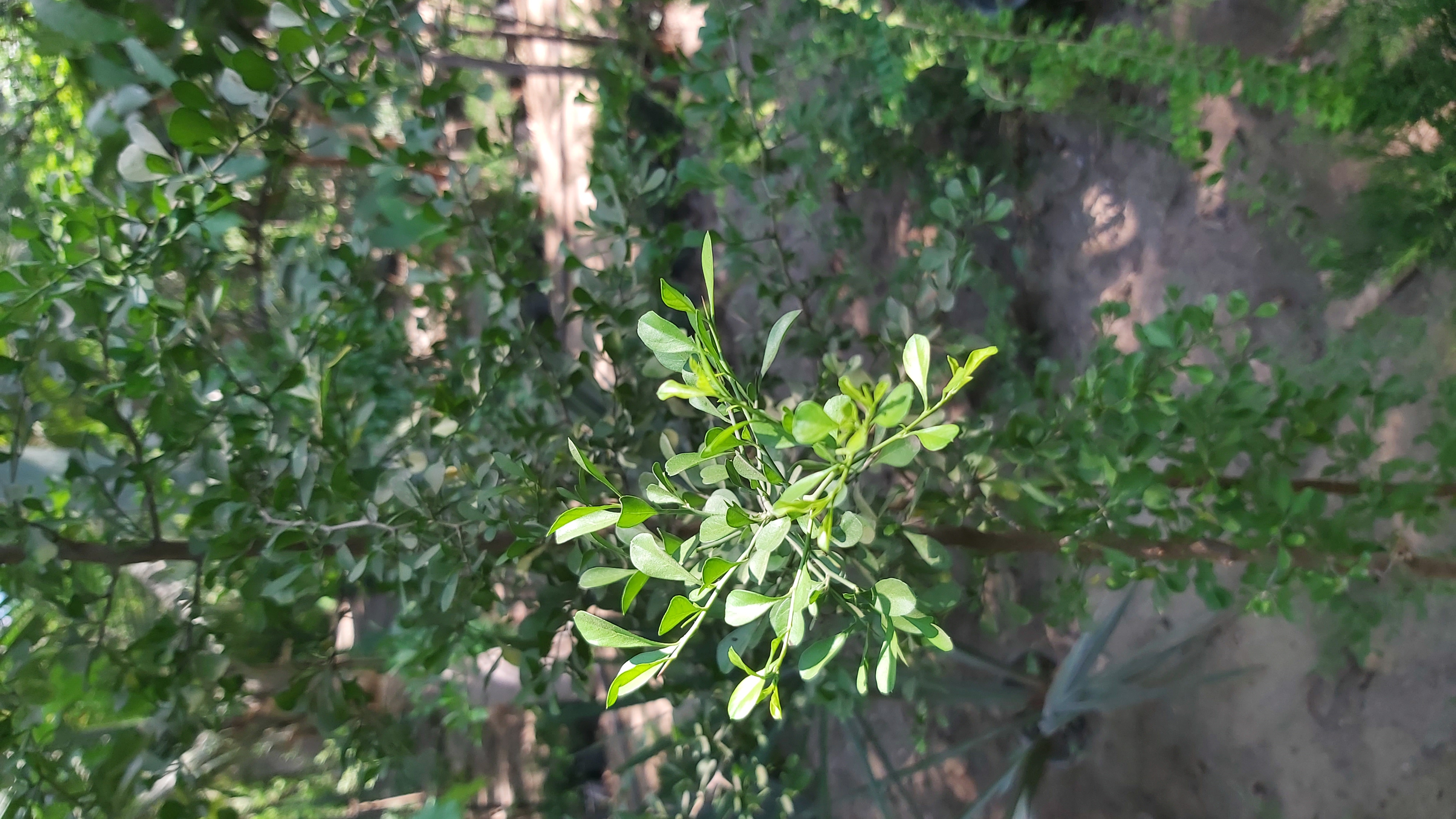 Small tree, deciduous,  growing up to 10 m tall leaves elliptical oval flowers yellowish green fruit globose black, drupe 6-10 mm across