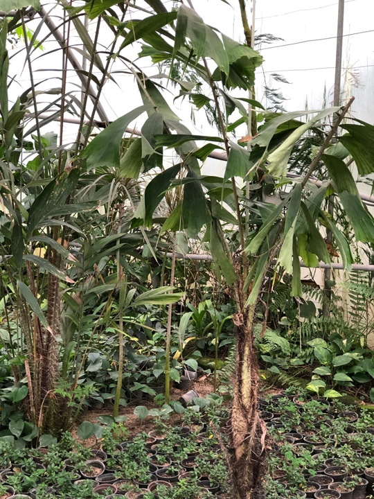 Solitary spiny tree, grow 3-10 m tall, 6-10 cm in diameter, ringed with flattened black spines 2 cm long leaves pinnate, with a short spiny petiole and drooping, spiny rachis leaflets clustered in groups of 4-6 grow in several planes male and female flowers are held on the same inflorescences fruits spherical 16-23 cm and bright red or orange-red when ripe