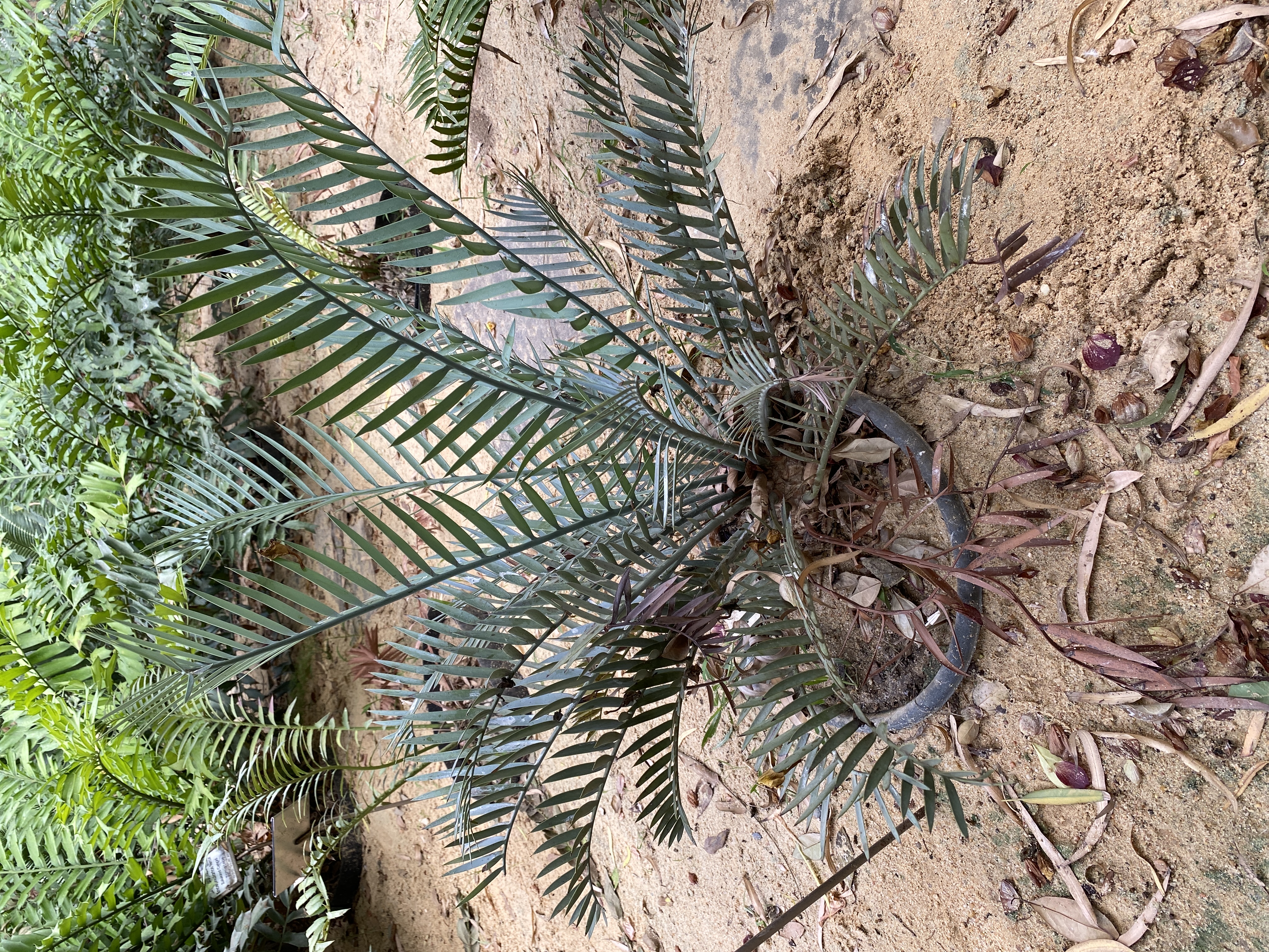 Dioecious plants, grows up to 2 m tall, 45 cm on diameter leaves pinnate 15 - 2 m long, blue or silver and strongly keeled male cones  green or brown 35 cm long, female cones 55 cm long, seeds red 45 cm long
