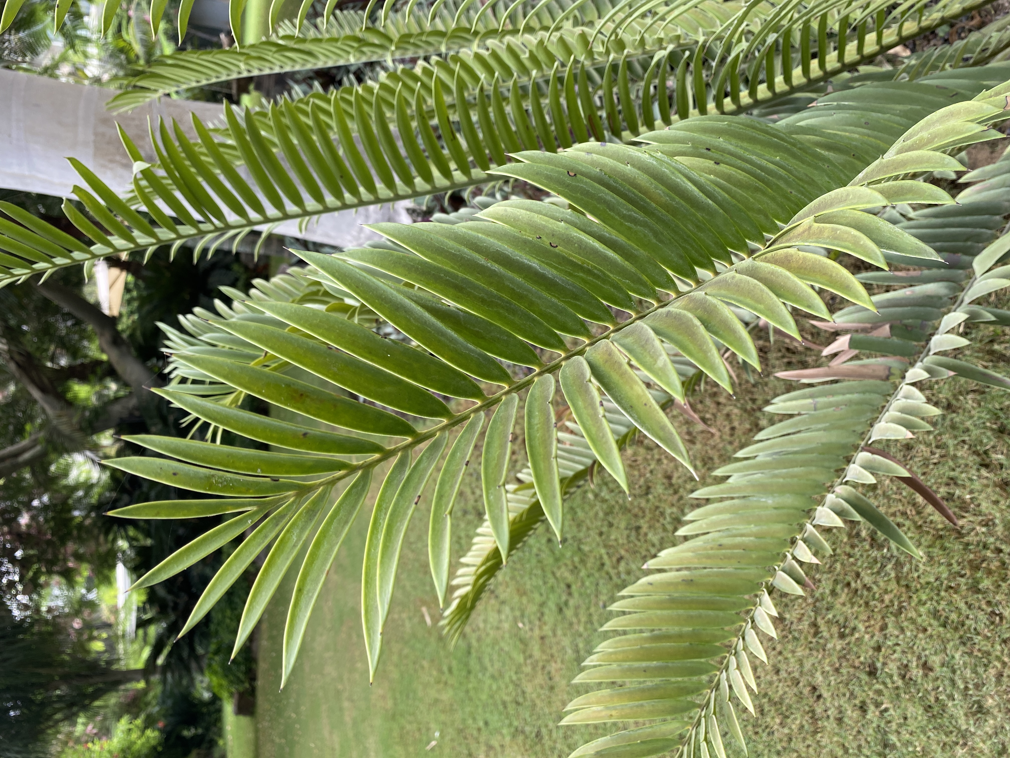 Cycads grow up to 4-5 m tall, stem 035-045 m in diameter leaves pinnate,  straight or curved, 2-3 m, the young leaves light green