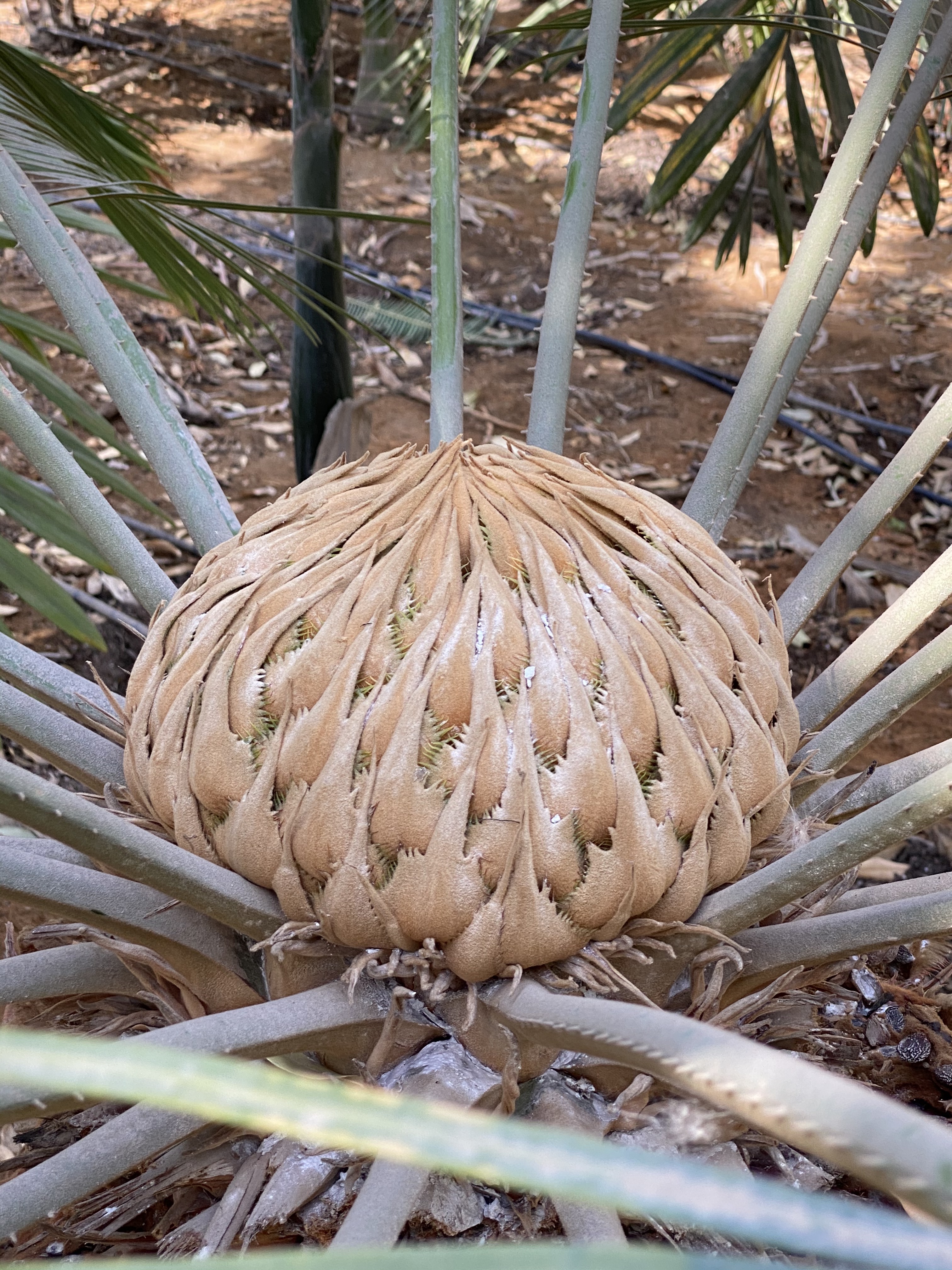 Stems arborescent, erect, sometimes branched, 2-12 m tall, 14-20 cm in diameter leaves semi-glossy, deep green to gray green 15-24 m long, petiole 30-80 cm long, leaflets linear, tapering to a minute spine female cones, closed type, densely gray to brown tomentose male cone solitary, erect, ovoid 30-55 cm long, 22 cm in diameter, yellow-orange