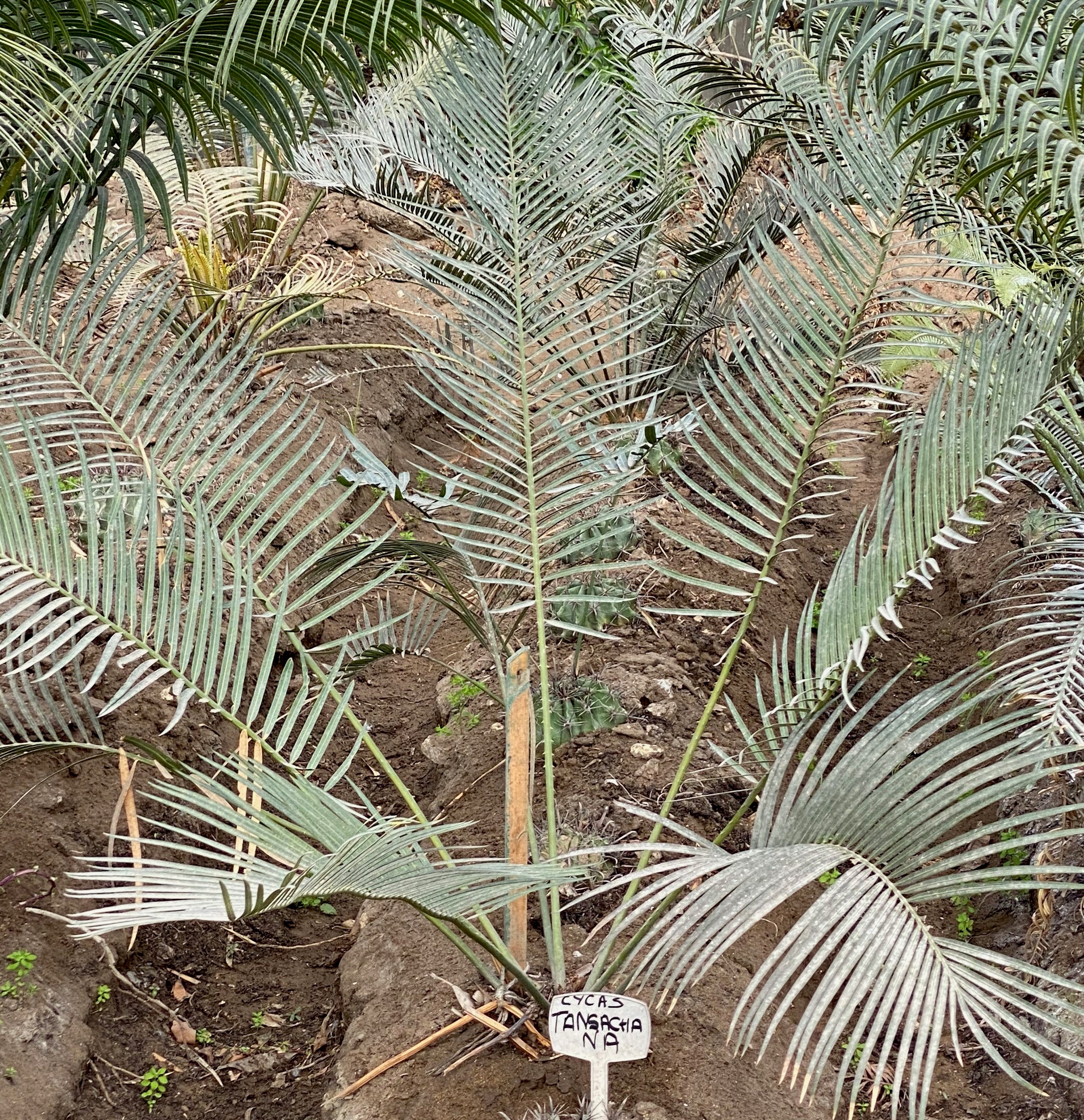 One of Thailand rarest cycads, grow up to 7 m, with many branches and large base up to 1 m wide leaves deep green, 100-180 cm long, leaflets white tomentum male cones narrowly ovoid, yellow, 25-45 cm long, 11-13 cm in diameter, the female plants do not bear cones instead they carry ovules and seeds on large, yellow-tomentose to brown-tomentose megasporophylls which are 20-22 cm long ovules 2-4, glabrous lamina orbicular, 100-140 mm long, 60-70 mm wide, deeply pectinate, with 40-60 soft lateral spines 18-25 mm long, 1-15 mm wide, apical spine distinct from lateral spines, 30-50 mm long, 5-7 mm wide at base (LLifle Cyclopedias of living forms)