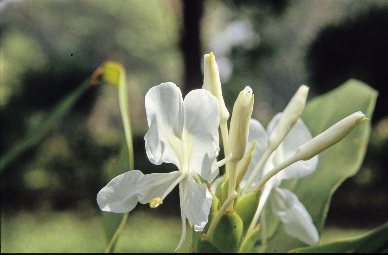 Herbaceous perennial grow up to 50 - 100 cm leaves  lance-shaped 13-60 cm  long flowers white, fragrant in dense spikes, butterfly-like, Each individual flower lasts about one day, but the inflorescence can produce hundreds over several weeks