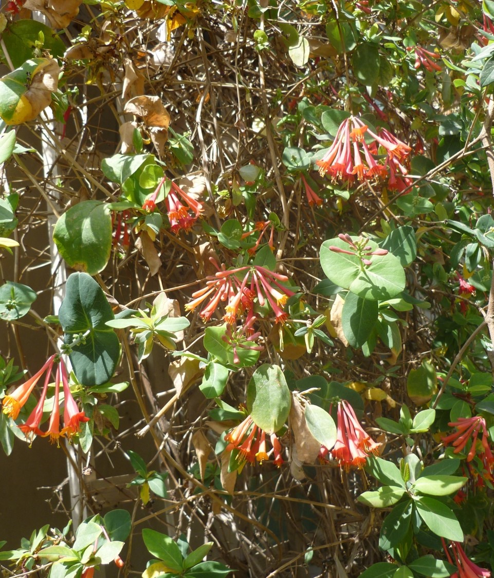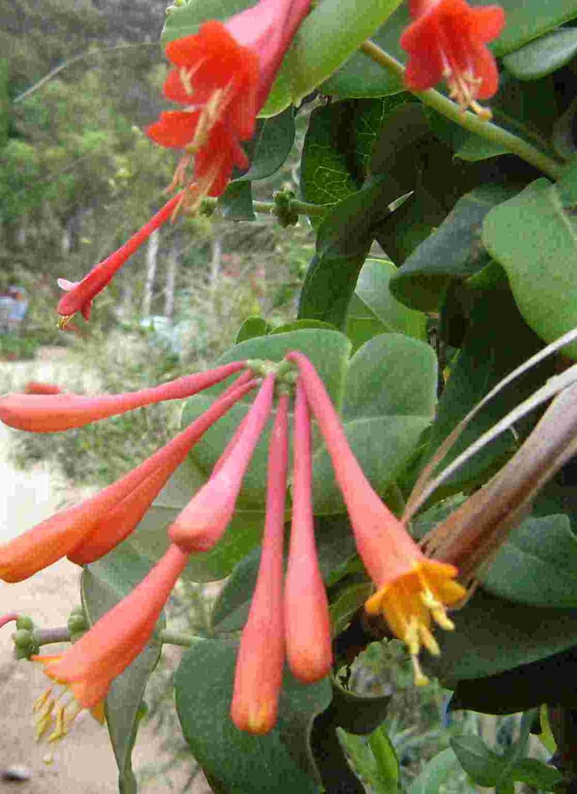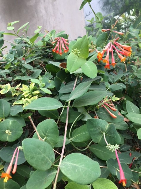 Twining vine to 6 m high leaves simple, oval flowers red outside, yellow inside