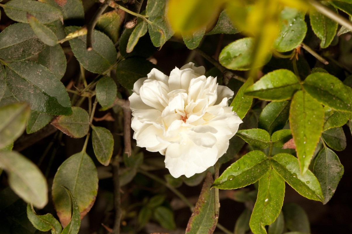Scrambling shrubby vine to 6 m leaves 3-5 leaflets flowers double, fragrant,  white