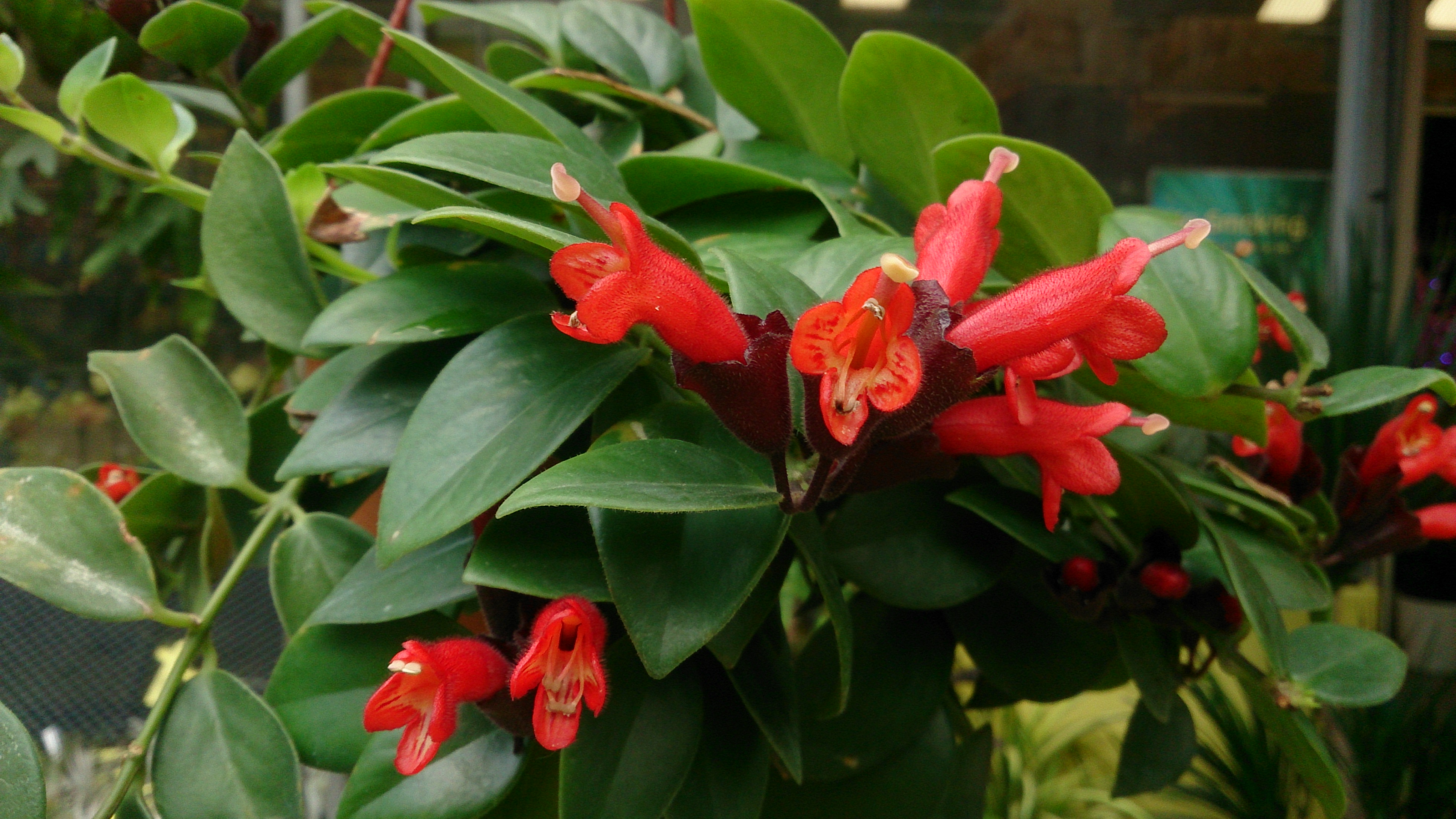 Epiphyte that is a popular and striking houseplant with its bright red tubular flowers.