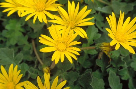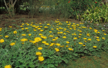 Perennial  or annual growing 25 cm high leaves  slightly hairy upper surfaces, 5-25 cm long , 2-6 cm wide elongated with toothed to deeply lobed margins flowers yellow petals, purple centers