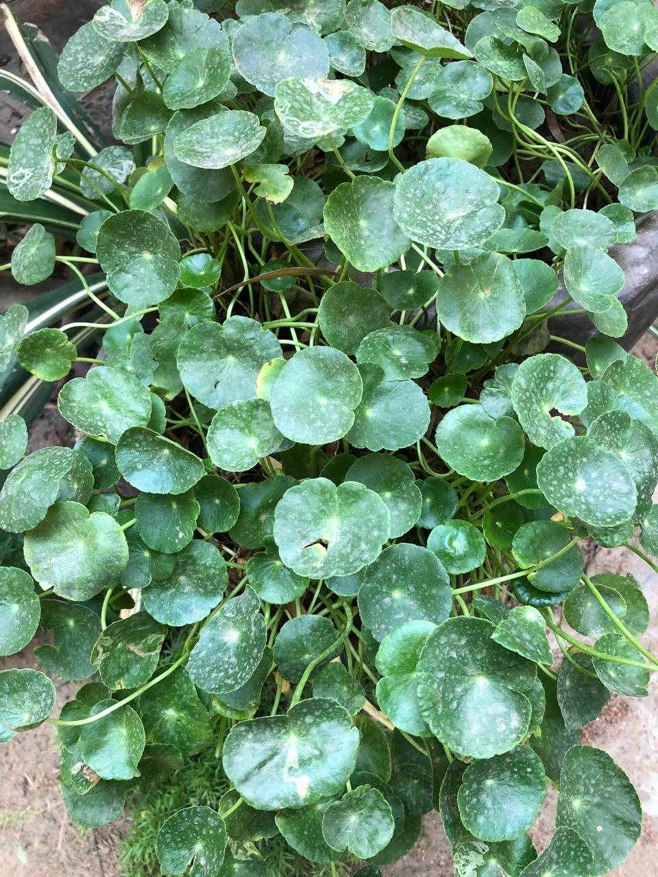 Semi aquatic perennial herb, grow up to 20 cm tall in terrestrial, herbaceous stems that root at the nodes leaves round, shiny green, with the petiole (Stalk) attached at the center flowers white, small star-shaped clustered in spherical umbels fruit small and hard capsule 1-2 mm long, ellipsoid