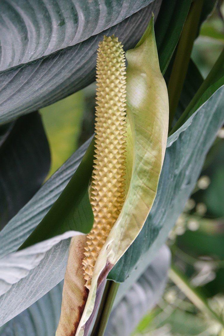 Perennial herbaceous plant grows about 1 m tall leaves dark green and broad elliptical, popular for the large, ribbed leaf blades flowers its spathe is large and snow white