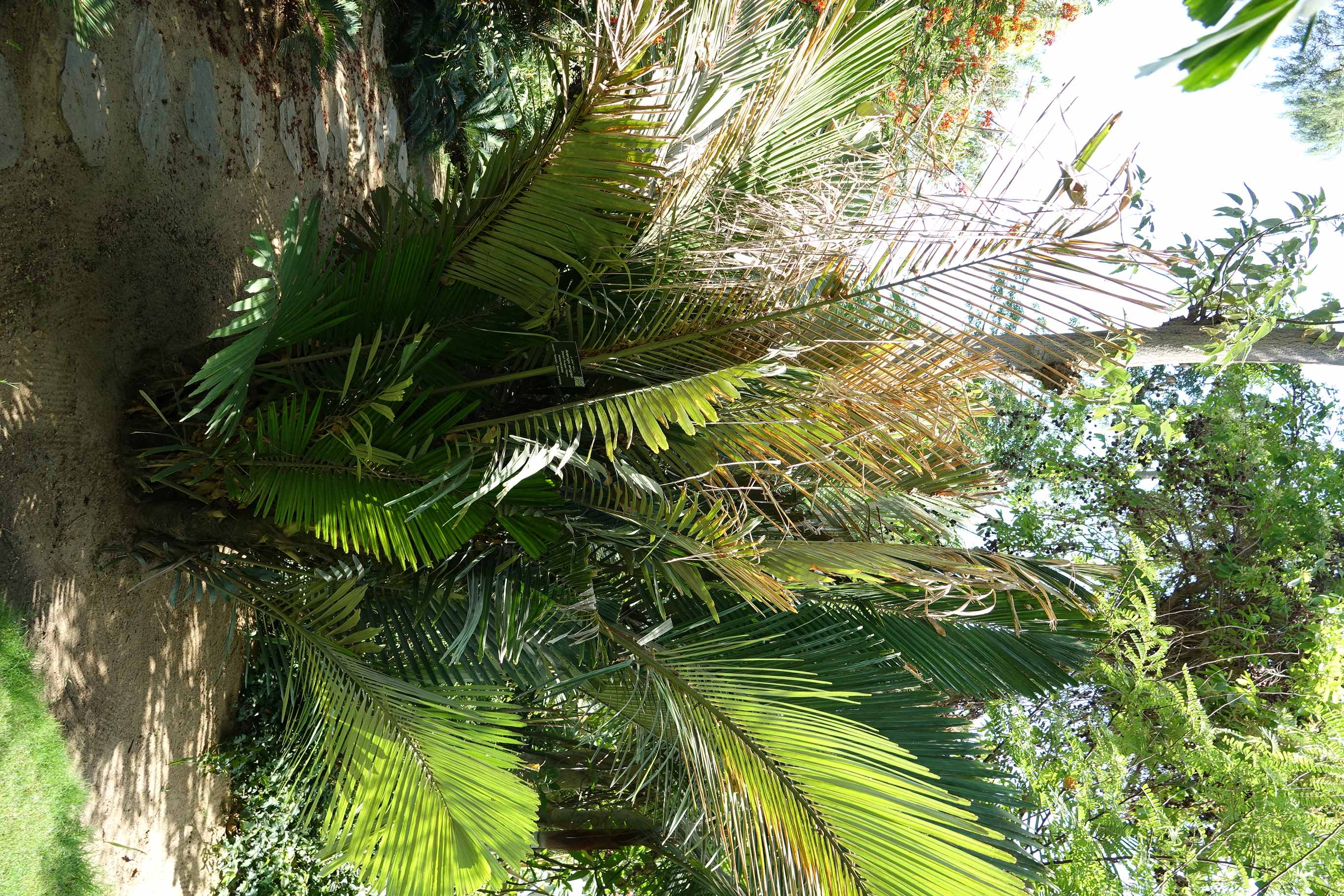 Ornamental palm. In its native homeland it is used to obtain starch, sugar, wine and fiber. Windbreak or Hedge.