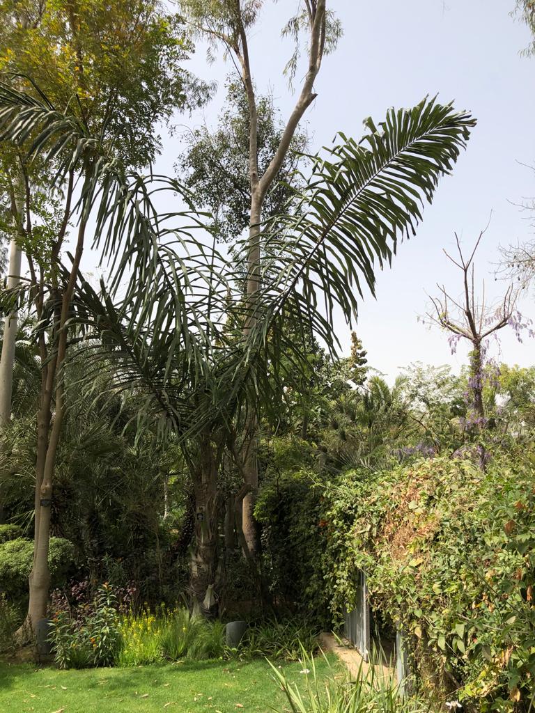 Ornamental Palm. Important source  of sugar derived from tapping the inflorescences.