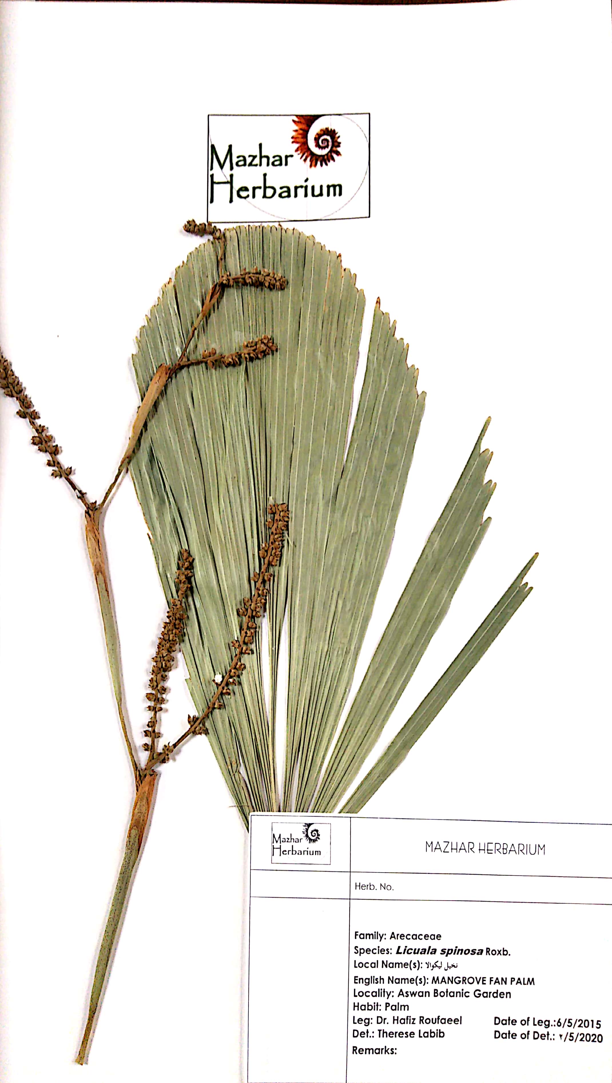Ornamental palm. One of the most robust species of Licuala, this palm from coastal areas is widespread in south-east Asia. Roofing, food-wrappers, walking sticks, binding, making hats, and eaten as vegetables.