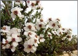 Evergreen  aromatic, small shrub, leaves scented, fine, soft, grey flowers white, daisy-like flowers that have a purple centre and are followed by attractive, white, woolly seed heads