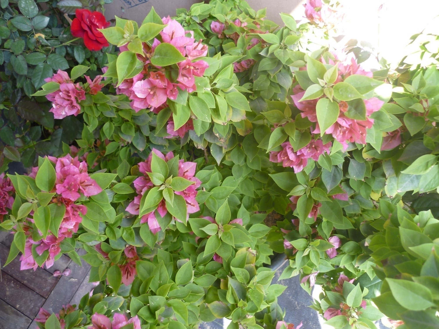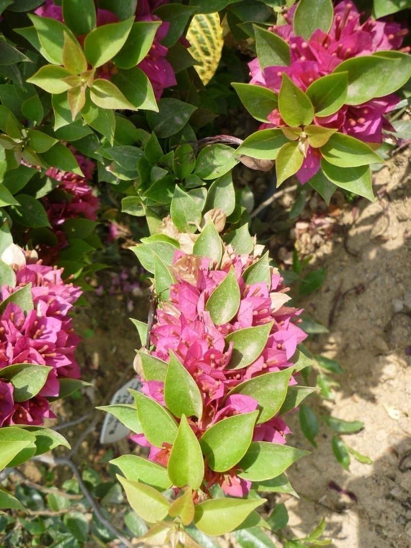 upright shrub grown 60-120 cm tall flowers small white, bracts bright pink leaves deep green