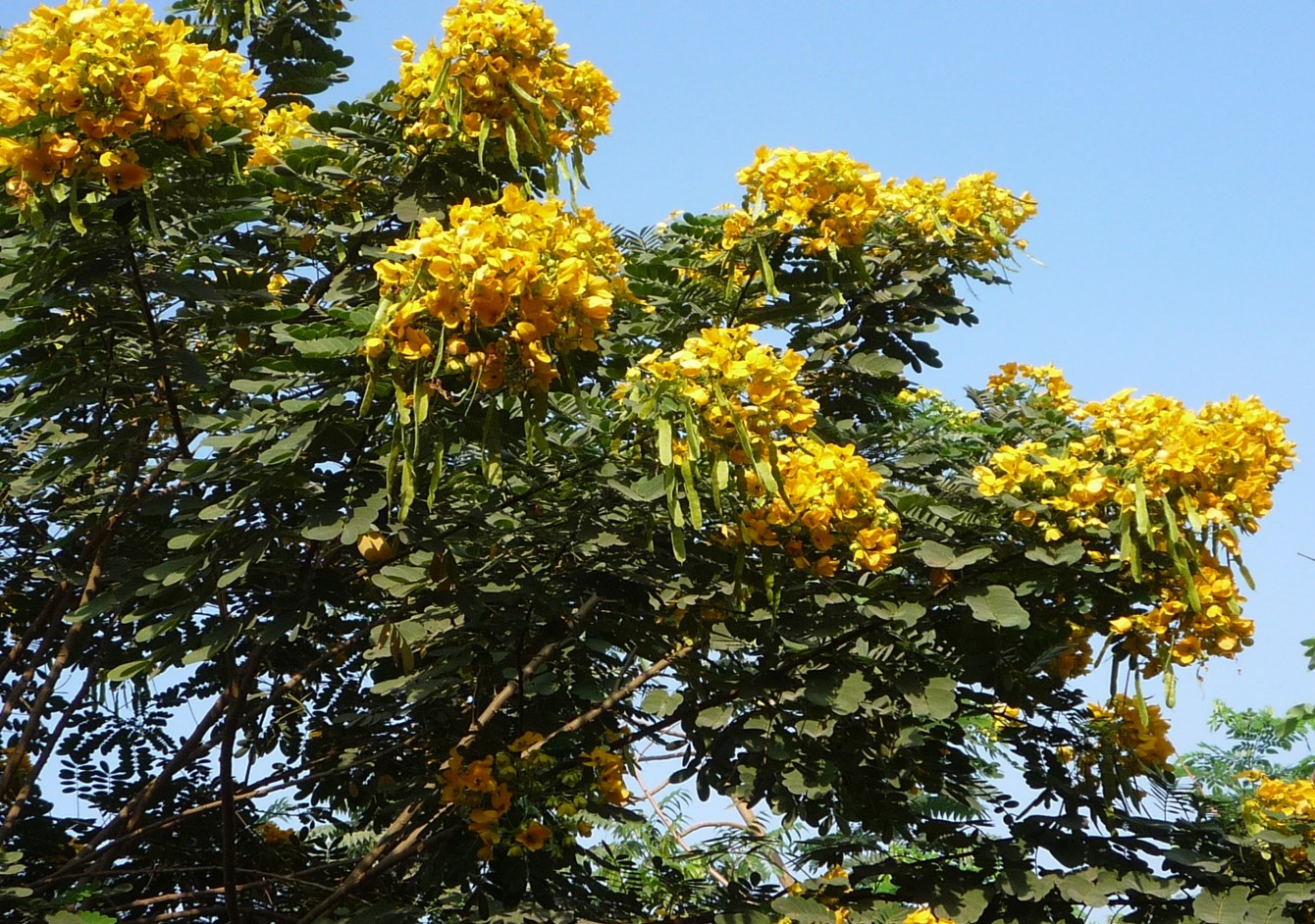 Large shrub or small tree grow up to 7 m tall leaves even pinnate, 6-9 pairs of leaflets flowers yellow in a raceme from the upper leaf axils fruit is a flat pod, glabrous with papery valves, measuring 7-10 cm long and 1-15 cm wide