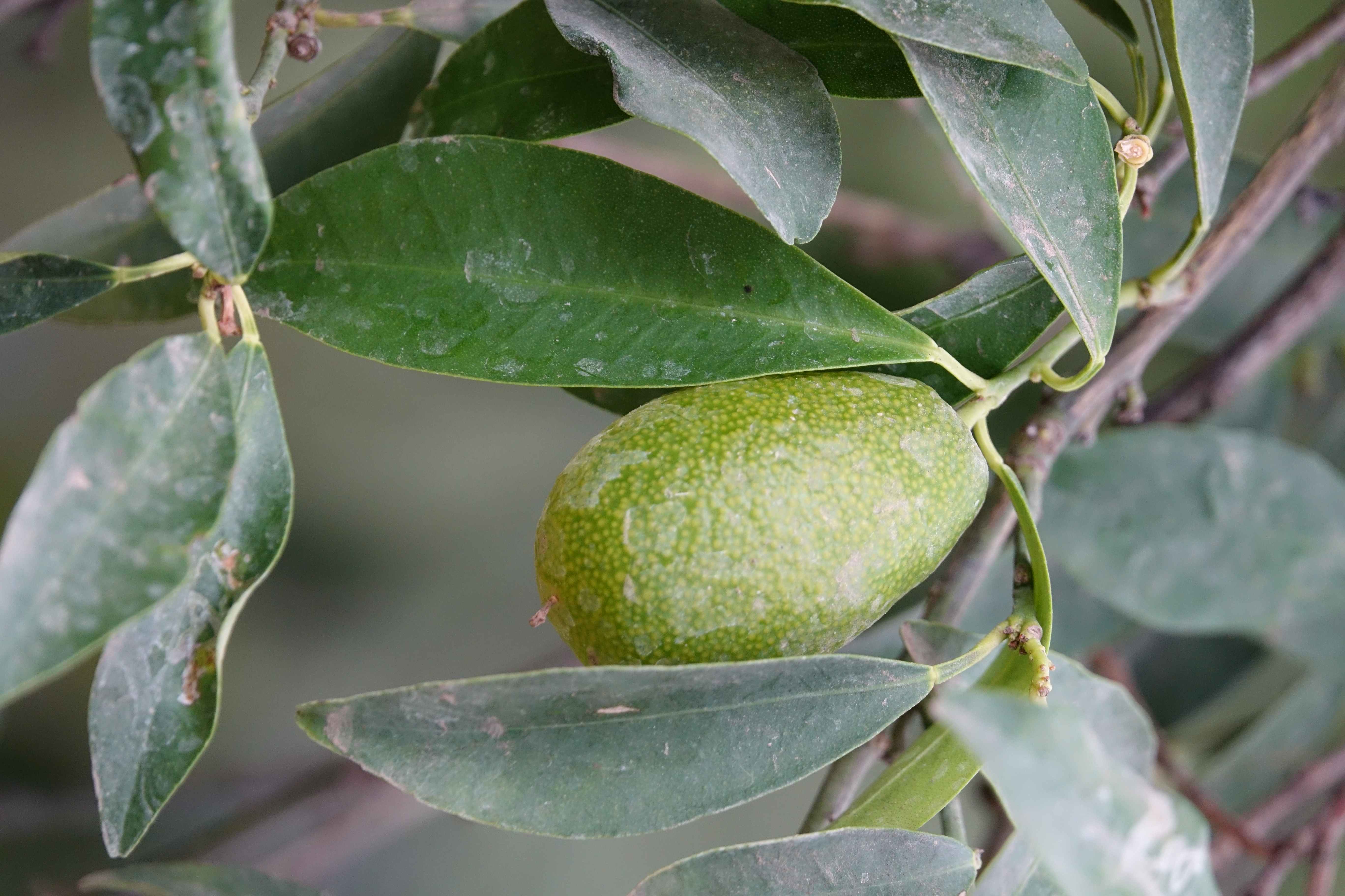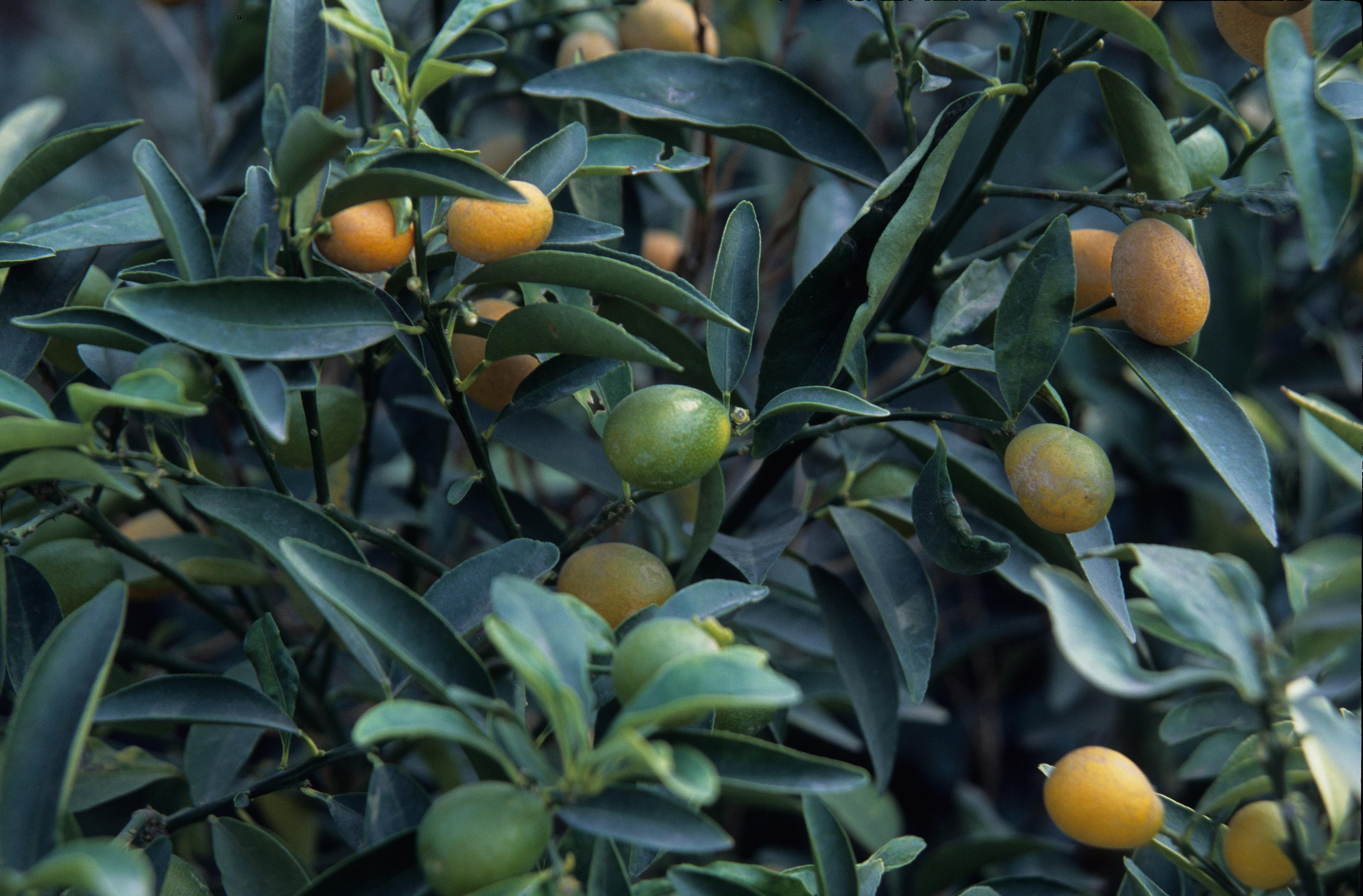 Evergreen shrub growing 1-3 m tall leaves lanceolate flowers fragrant, white in spring and summer fruits berries, globose orange 3-5 cm long, 2-4 cm wide