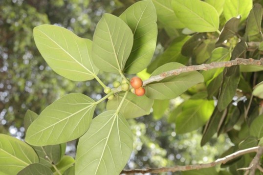 Evergreen, fast-growing tree, up to 20 - 30 m It is resistant to drought  and mild frost It produces propagating roots which grow downwards as aerial roots on  the branches that grow downward like lianas Once these roots reach the ground, they  take root and become woody trunks and supportive Leaves ovate to elliptic flowers  monoecious both male and female flowers occurs on the same individual fruits globose  1-25 cm in diameter, red or orange when ripe