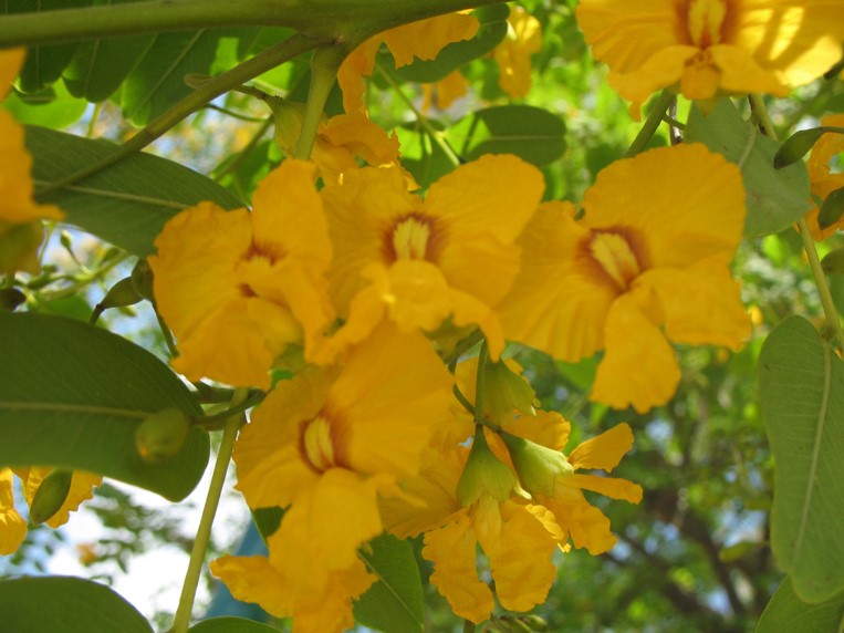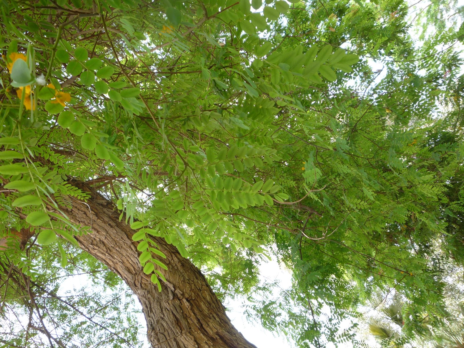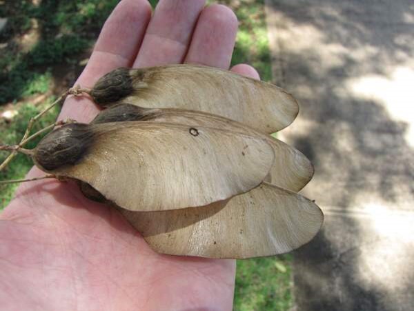 Deciduous tree up to 30 m tall leaves pinnate 25 cm long flowers bright yellow fruit pod samara, the seed at one end
