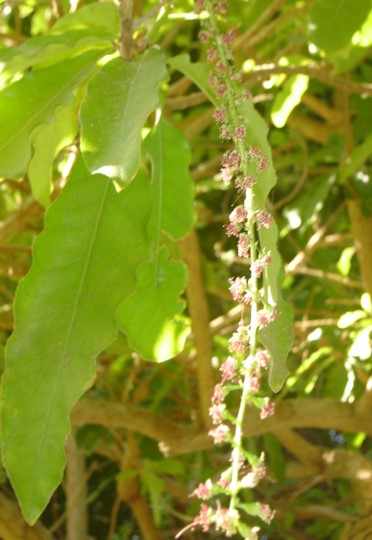 Deciduous tree,  grow up to 50 m tall leaves about 15 cm long and crowded toward the ends of branches, it is considered a good fodder for cattle flowers greenish yellow, in axillary spikes to 15 cm long fruit ovoid 25 cm long, drupaceous, pubescent