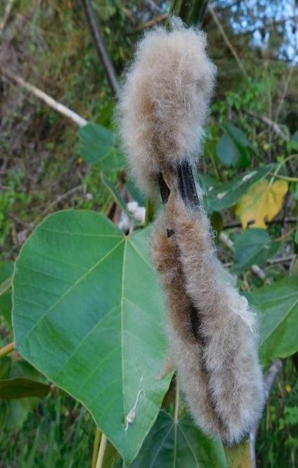 Deciduous tree grows to 30 m high flowers solitary white fruit capsule contains many seeds with long hairs