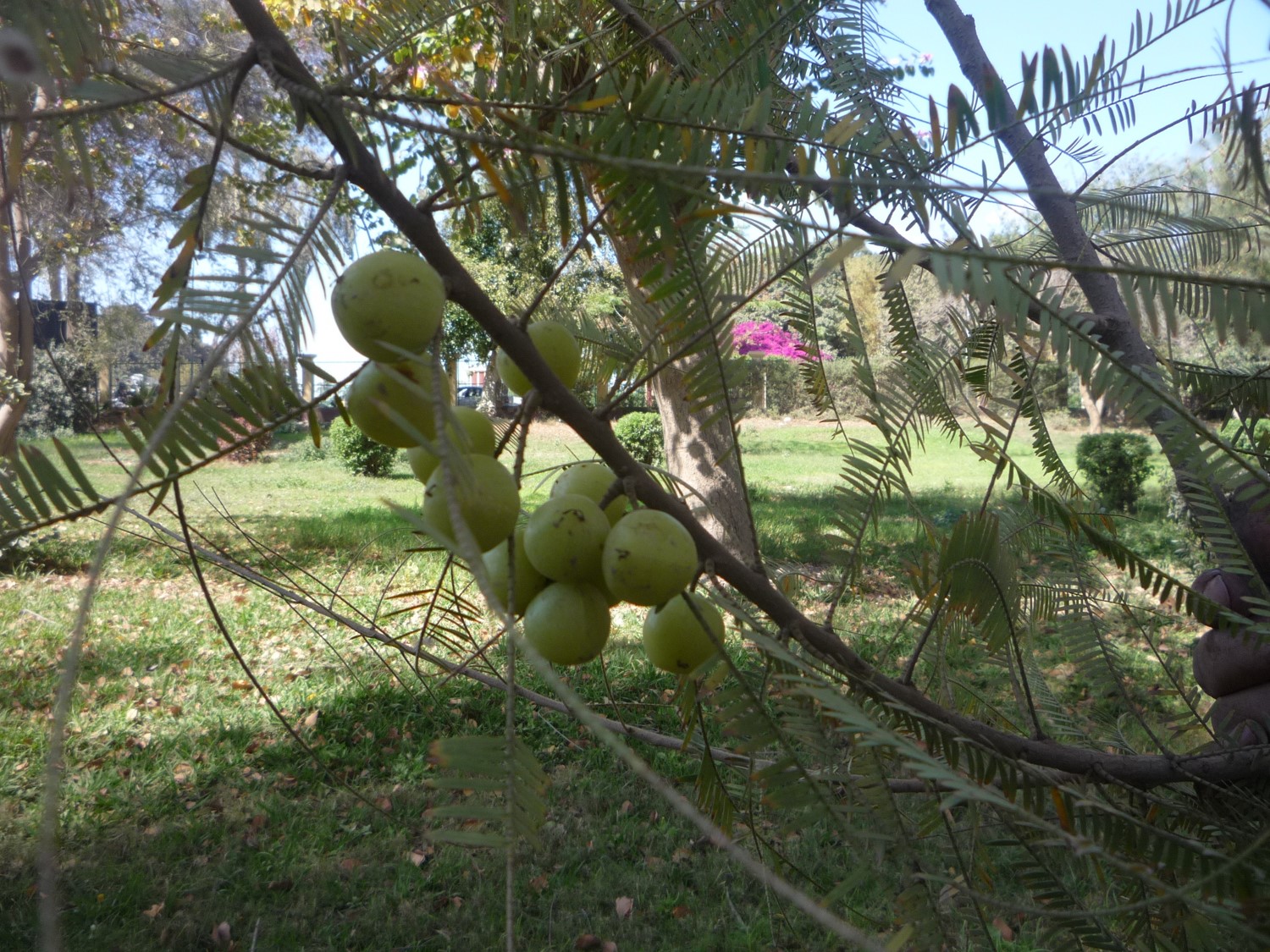 Deciduous tree, grow up to 18-32 m tall leaves feathery flowers are minute, pale greenish white held at the leaf nodes fruit round plum-like, juicy, yellow to 2 cm, edible and high in vitamin  (C) but sour