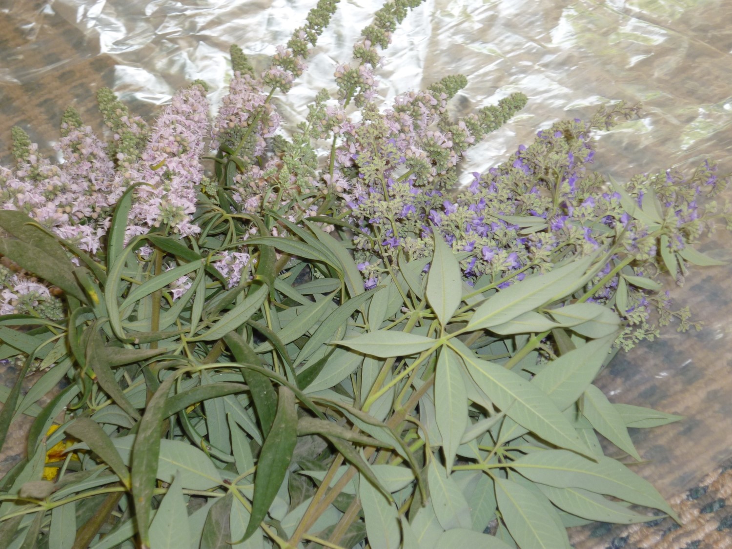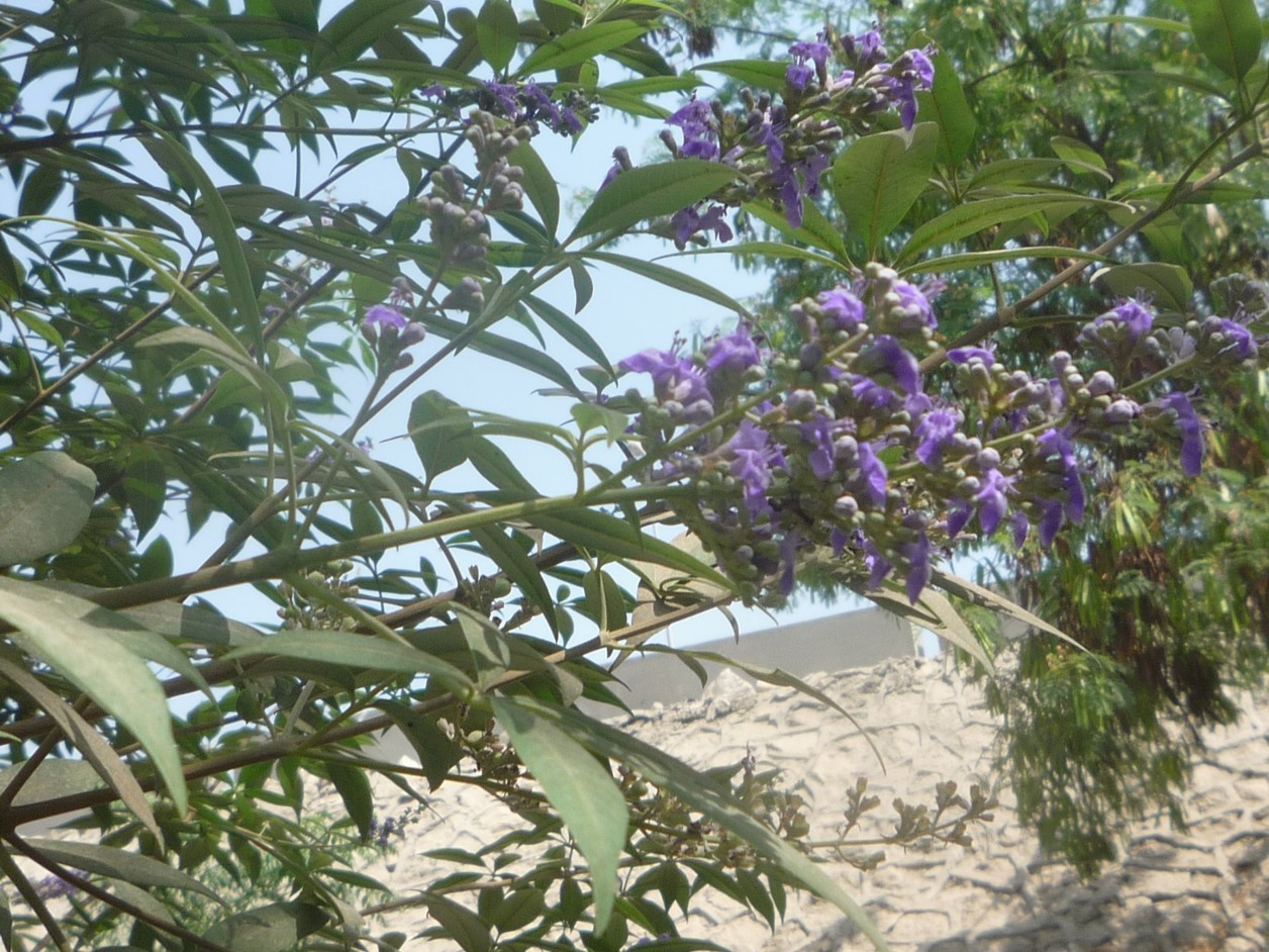 Deciduous shrub or small tree up to 2-4 m high leaves palmately 5-7 foliolate, leaflets lanceolate flowers lilac or deep violet fruit drupe globose 2-25 mm on diameter