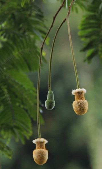 Tree up to 30 m tall with smooth reddish-brown bark leaves bipinnata, pinnae 14-18 pairs flowers white-yellow, small and numerous fruit a legume on long stalk, 35- 45 cm x 3-5 cm, usually strongly twisted and  prominently swollen over the 12-18 seeds