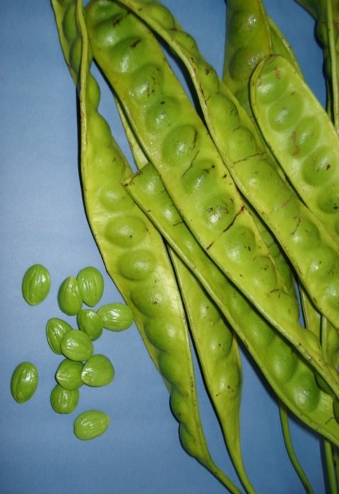 The fresh seeds, young or ripe, may be eaten raw, cooked or roasted as a side-dish with rice. Seeds are also sun-dried then fried in oil and eaten as a snack. Semi-ripe pods pickled in salt. Seeds  used as folk remedy to lower blood sugar and treat diabetes, as well as kidney pain and colic. Also eaten to expel stomach gas.