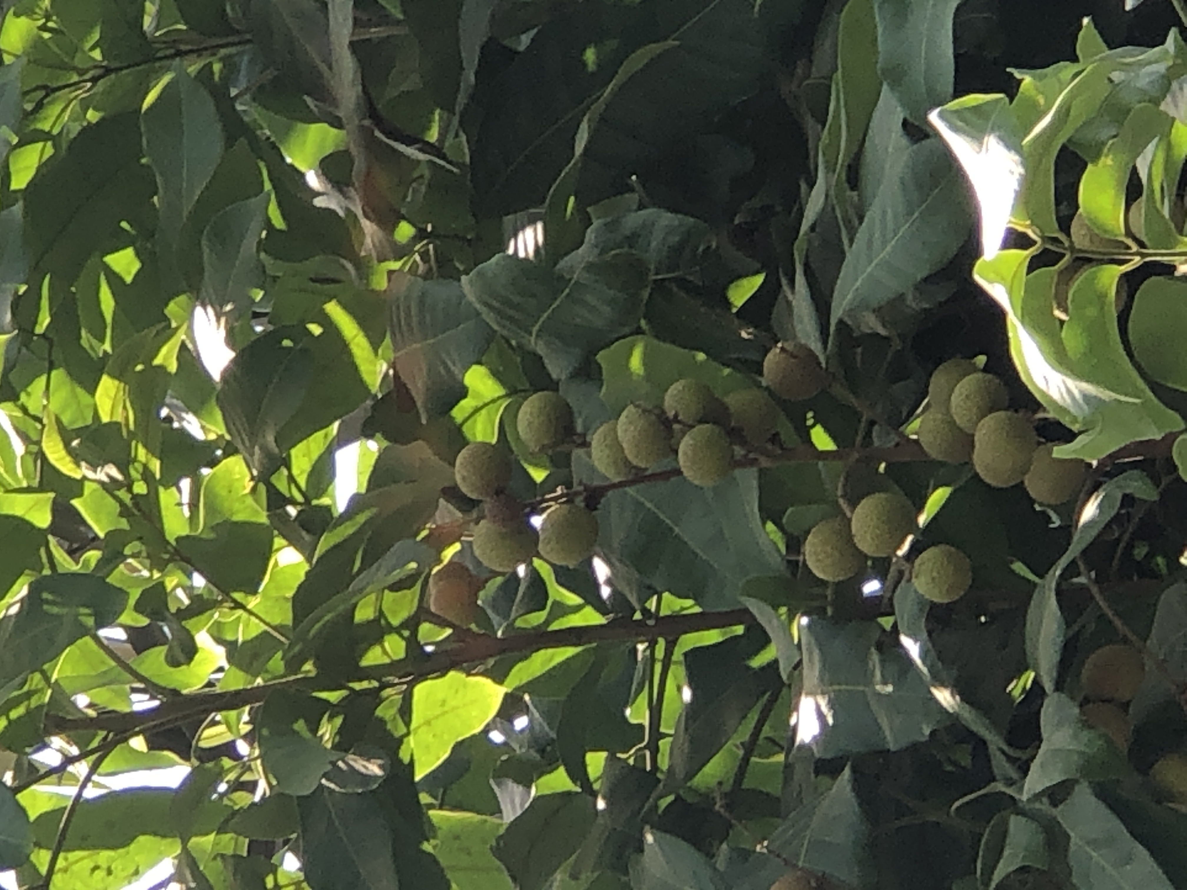 Evergreen tree grow 9-12 m high leaves  leathery, wavy-edged, pinnate, compound, leaflets 6-10 narrow on opposite pairs flowers pale yellow to white in panicles  fruit  spherical, edible, single seeded, sweet and juicy, grape-sized, in pendant clusters ripen to yellow-brown