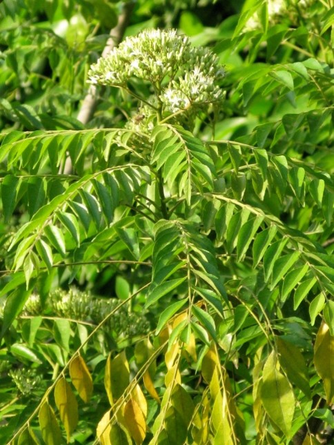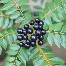 small evergreen tree with wonderfully sweet, curry-pungent foliage It can grow 4 - 5 m tall leaves composed, leaflets lance-shaped flowers white arranged in clusters at the terminal fruits round to oblong, black, glossy