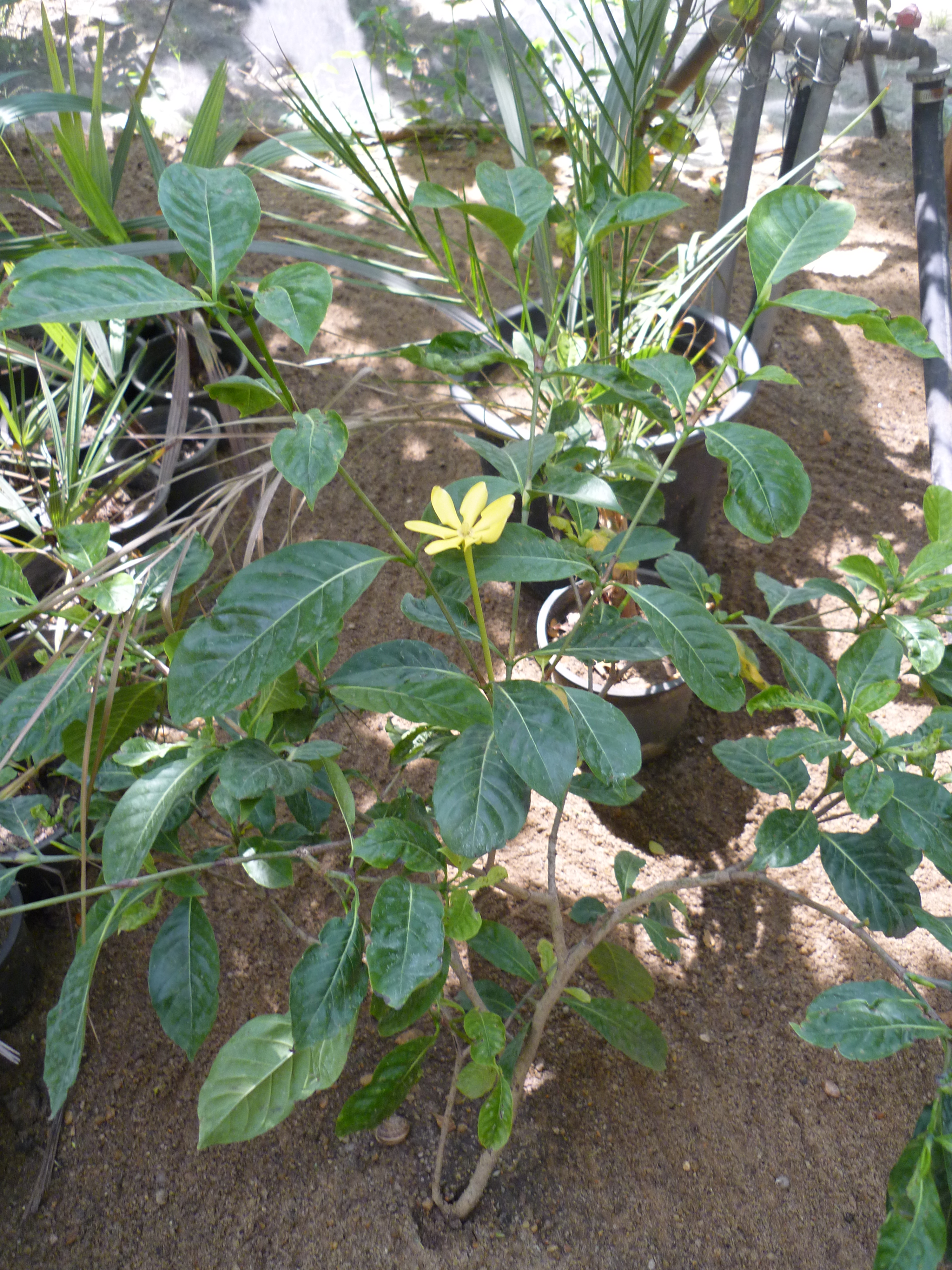 Tree growing up to 15 m tall leaves elliptic to obovate with entire leaf margin, hairy underneath flowers fragrant, open white, turn golden orange, tube of the flower is narrow and very long