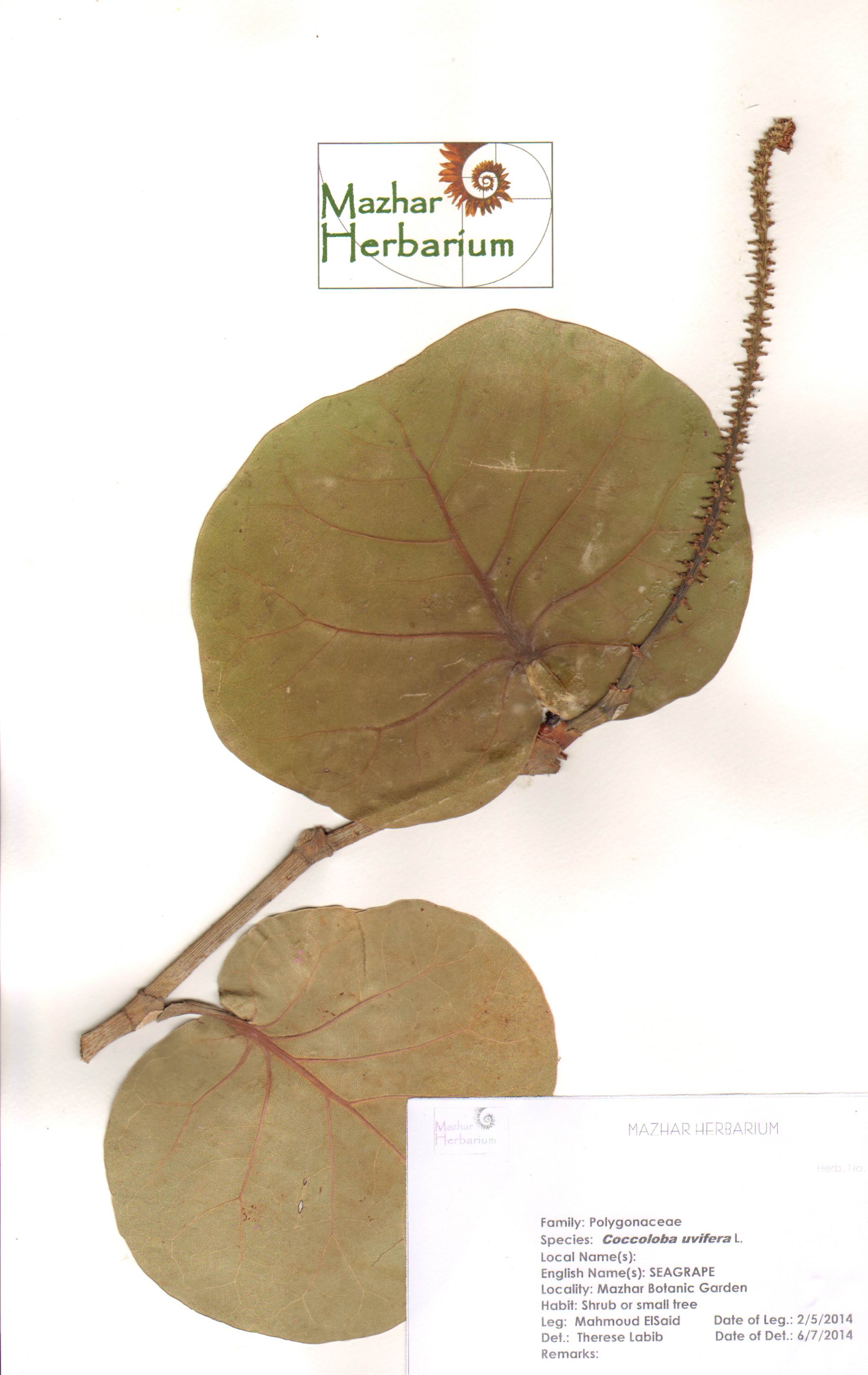 Evergreen  small tree grows up to 6-15 m tall leaves nearly round, red veined flowers whitish fruits edible reddish which hang in grape-like clusters 2 cm wide