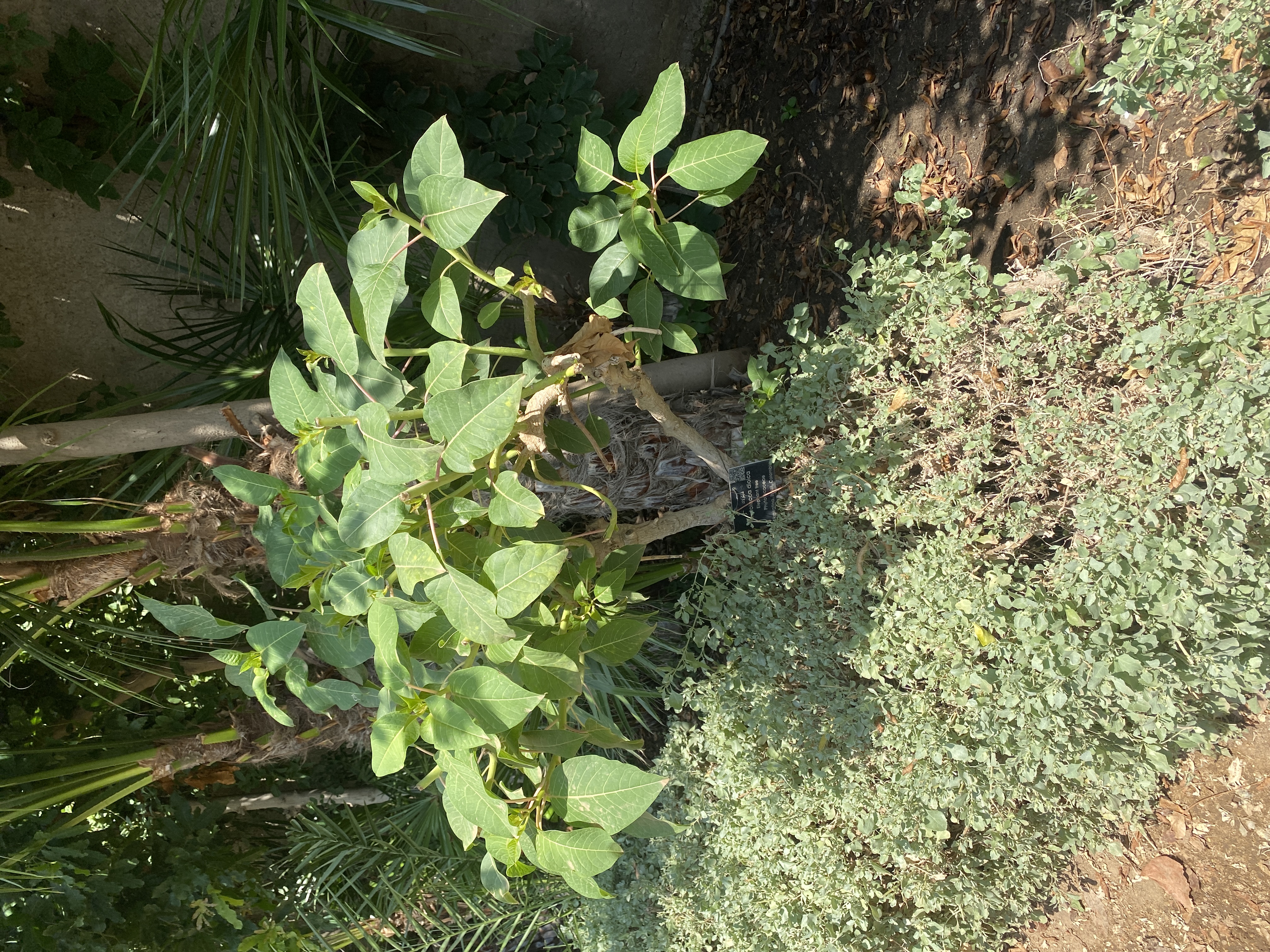Diocious small tree , Fast grows 10- 20 m high and 30 m spread leaves elliptic to lanceolate, large petiole pinkflowers cream or whitish-green, attached to hanging, pendulous fruit fleshy, purple -black in mature