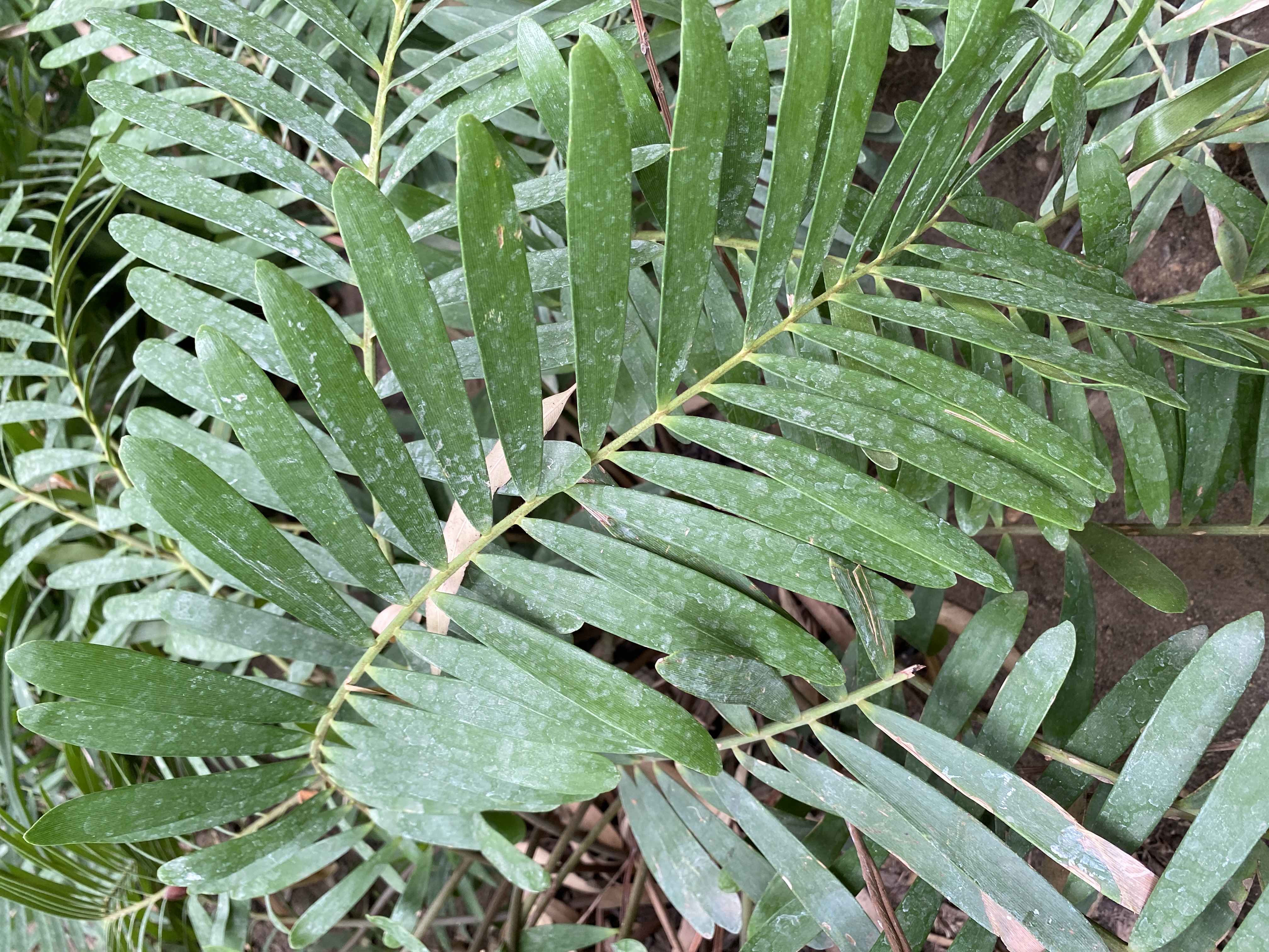 Dioecious plant having male or female plants leaves 60-90 cm long, 5-30 pairs of leaflets, leaflets linear to oblong-obovate The male cones are cylindrical, growing to 3–15 cm long they are often clustered The female cones are elongate-ovoid and grow to 6–15 cm long and 4–6 cm in diameter