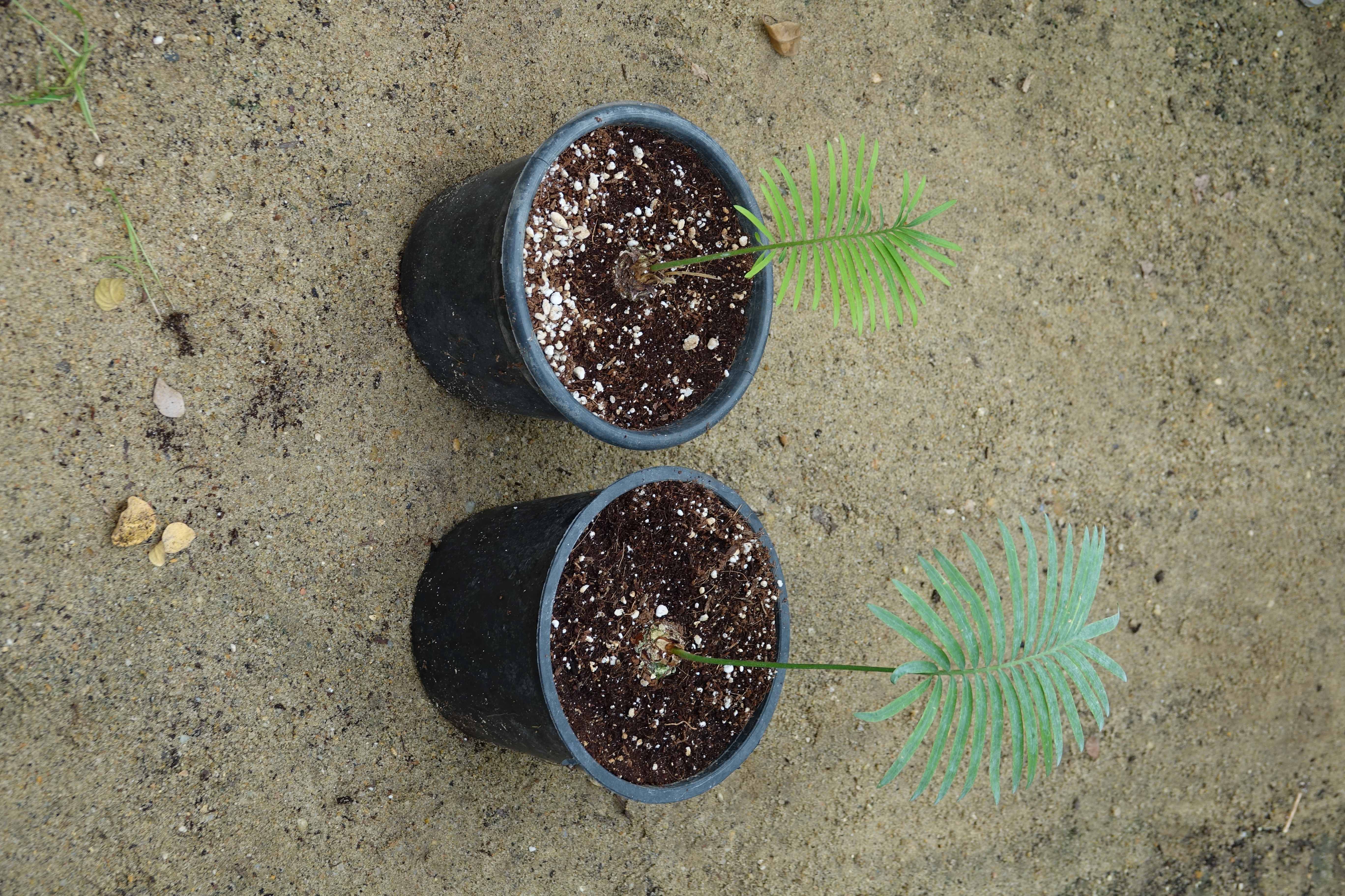 Palm-like plant with a  swollen trunk, 2-12 m tall, 14-20 cm in diameter, rarely 1 m in diameter leaves semi-glossy, deep green to gray green 15-24 m long male cone solitary, erect, ovoid 30-55 cm long, 22 cm in diameter, yellow-orange Female cone is flattened globose (8 – 14 cm diameter), sporophylls are covered with brown hairs and round apical lobes are lined with 22 – 46 spines at the margin Seed is almost round (3 – 37 cm long and 25 – 35 cm wide) with yellow seed coat