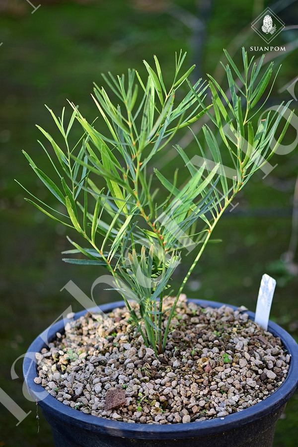 Stem subterranean, 20 cm in diameter leaves 110 cm long rachis spirally twisted Male cones 15–25 cm long, 4–6 cm diam, spines to 18 cm long Female cones 12–18 cm long, 7–9 cm diam, longest spines 15–25 cm long seeds 25–3 cm long, scarlet