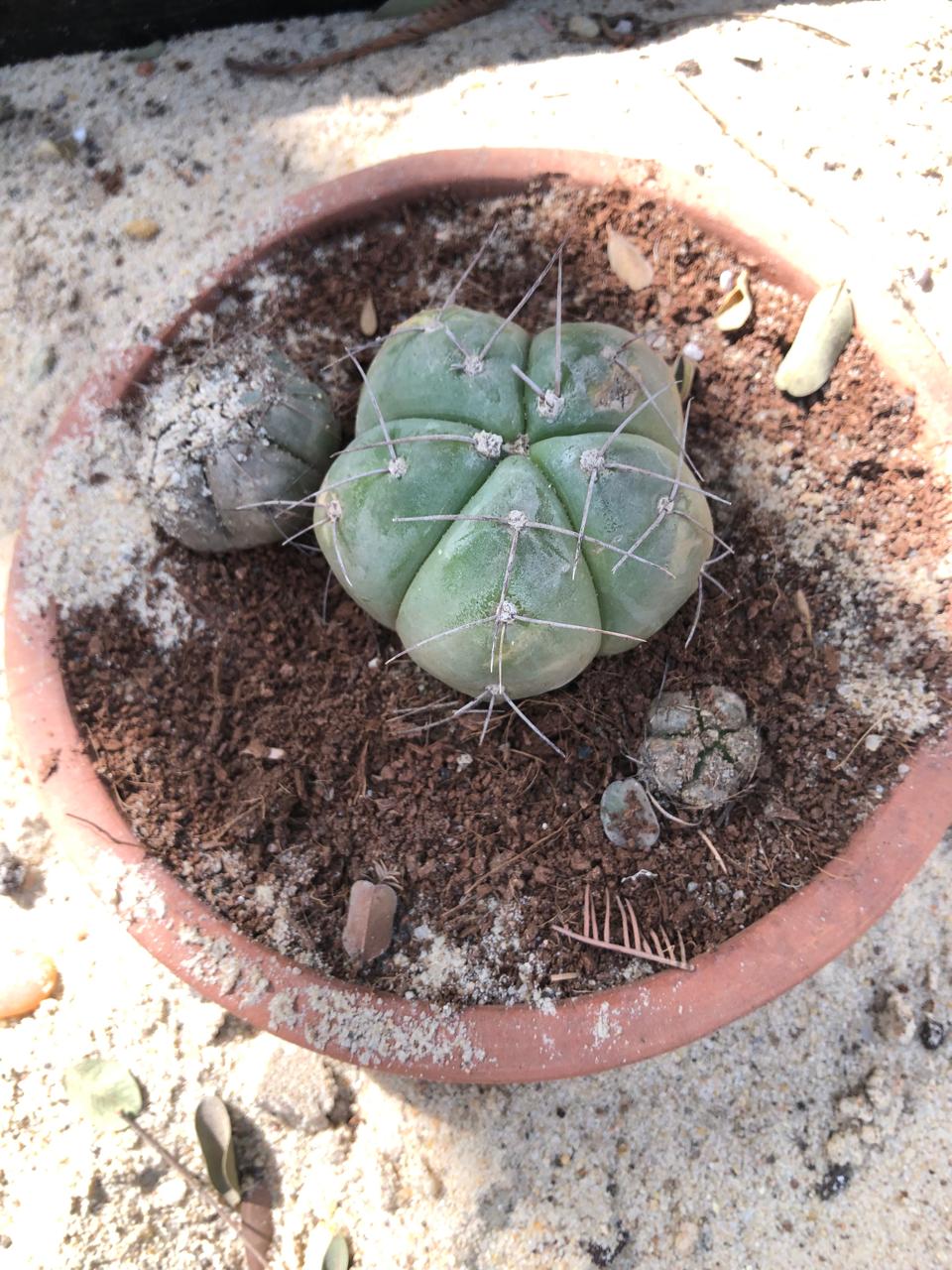 large cactus, minimally spine with a green ball-shaped body Usually solitary or slowly clustering as they age stem smooth, globoid, shiny green,