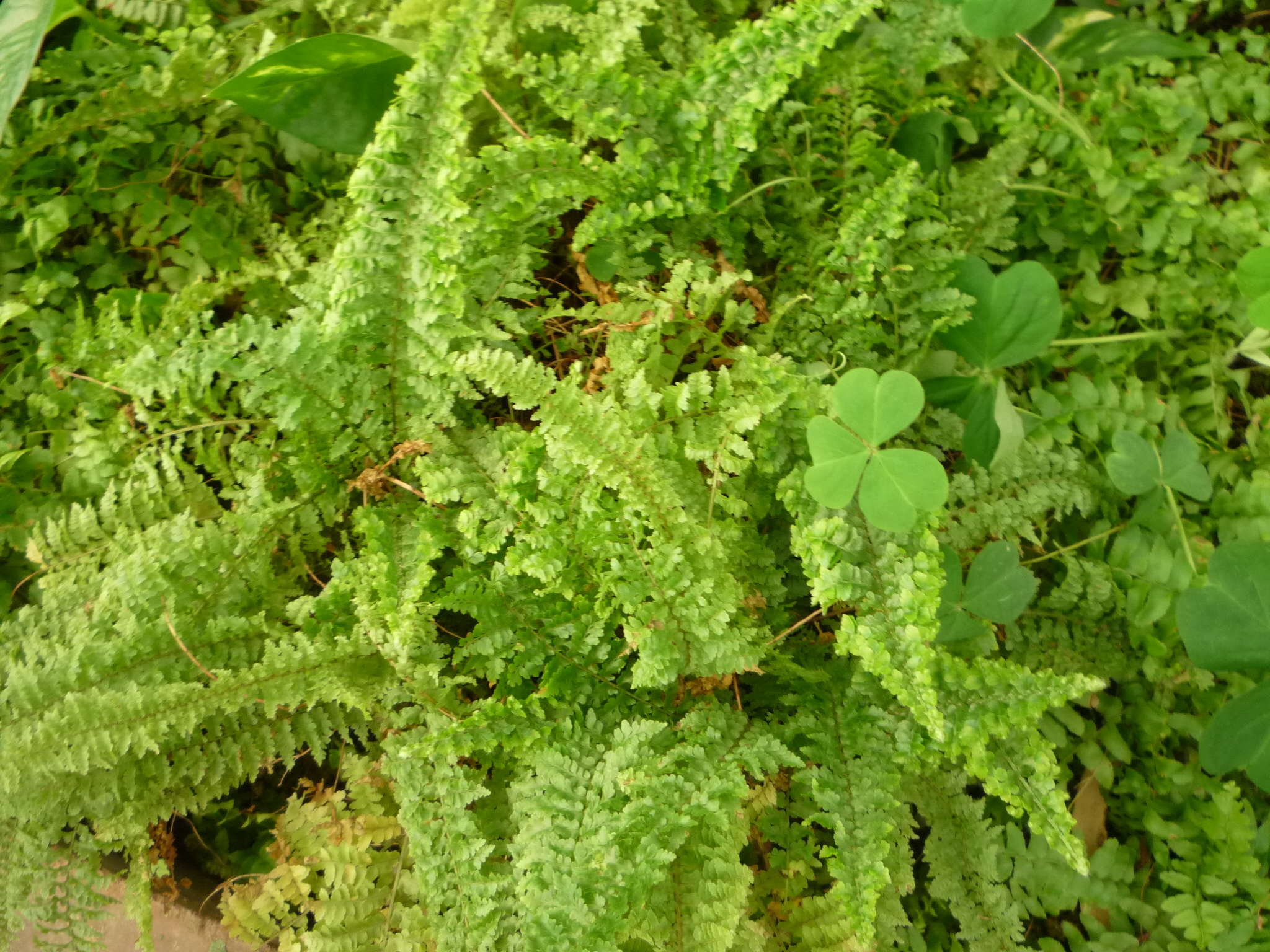 shorter frond, more compact, with alternate leaflets(P=pinnae0 on either side of the midrib