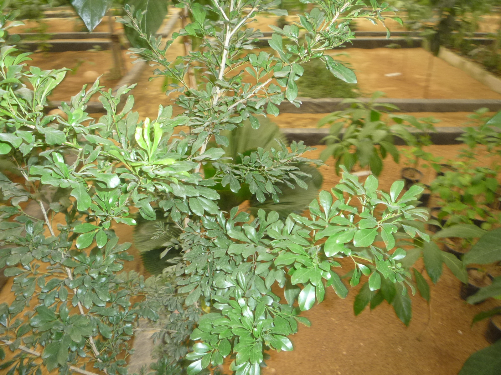 Evergreen dioecious shrub or small tree grow up to 2-8 m tall multiple branches leaves compound 3-5 leaflets, ovate to elliptic, 5-12 cm long Inflorescence is an axillary panicle (to 5-10 cm long) containing numerous tiny rounded yellow flowers (each to only 2 mm wide) in the shape of miniature balls that do not open up when they bloom