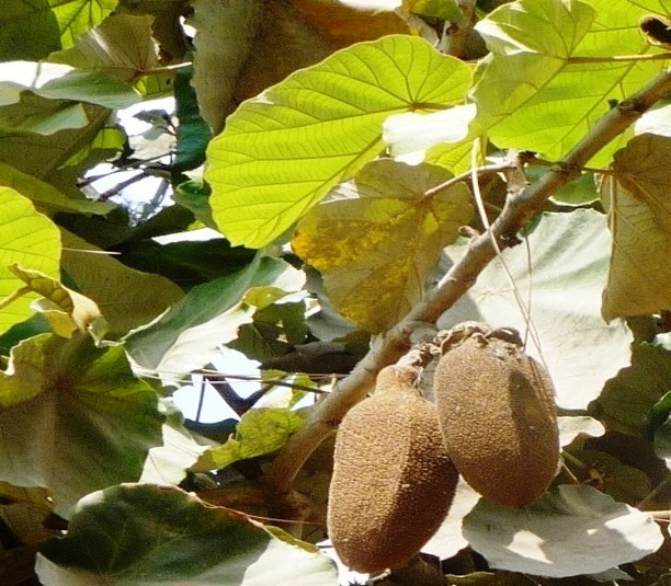 Evergreen tree to 30 m high leaves leathery ovate to orbicular on outline to 30 cm across, peltate or cordate at base, flowers axillary, solitary, sepals rusty-tomentose, slightly longer than the white petals fruit a woody, 5- celled capsule to 15 cm long, seeds many, flattened, winged apically