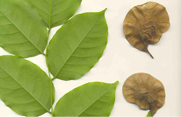 Semi deciduous tree up to 40 m tall, bark grey-brown leaves alternate,  odd-pinnate leaflets 5-11, broadly ovate to elliptic shaped flower yellow I cluster  panicle or raceme fruit pod is disc-like 3-5 cm diameter, with a central seed- bearing  portion and a flattened wing surrounding the central part