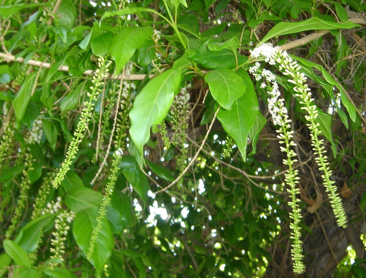 Semi deciduous shrub or small tree , multi stemmed up to 16 m tall, 30 cm in diameter leaves 4-20 cm long, and have orange petioles, flowers white  in axillary and terminal racemes and panicles 20-40 cm long fruits red to black sub globose drupes 7-10mm in diameter