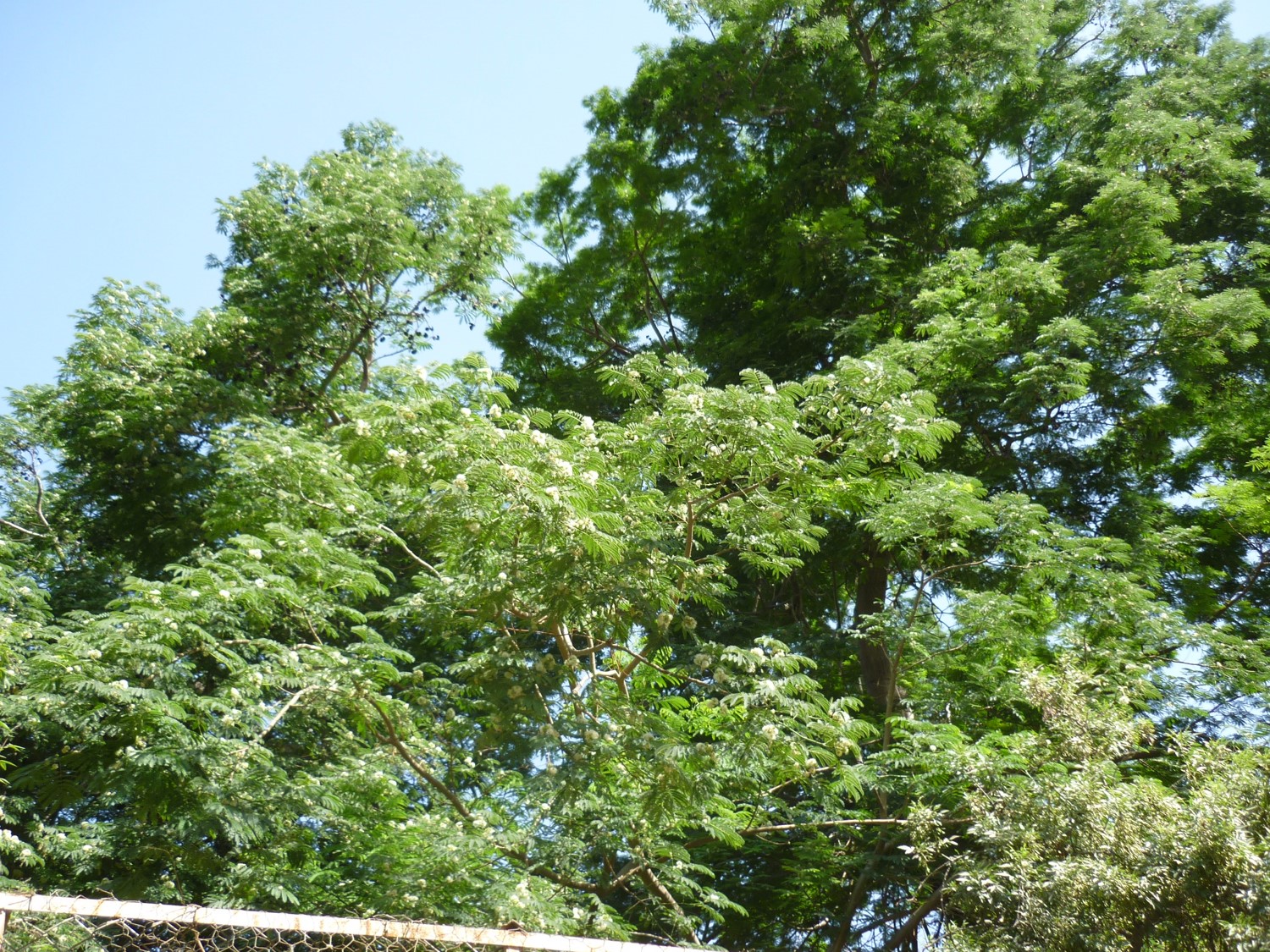 Deciduous tree  with a very wide, dense, low crown, it can grow 10-20 m tall leaves bipinnate flowers white fruit  ear-like shape