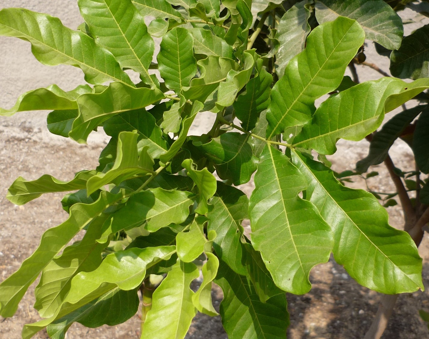 Medium sized tree to 7-15 m high leaves pinnate leaflets 2-3 pairs, broad, elliptic-ovate, obtuse to emarginate, terminal pair largest flowers white in terminal pubescent panicles fruit obovoid, 12-15 cm long, rusty-pubescent, seeds black, globose