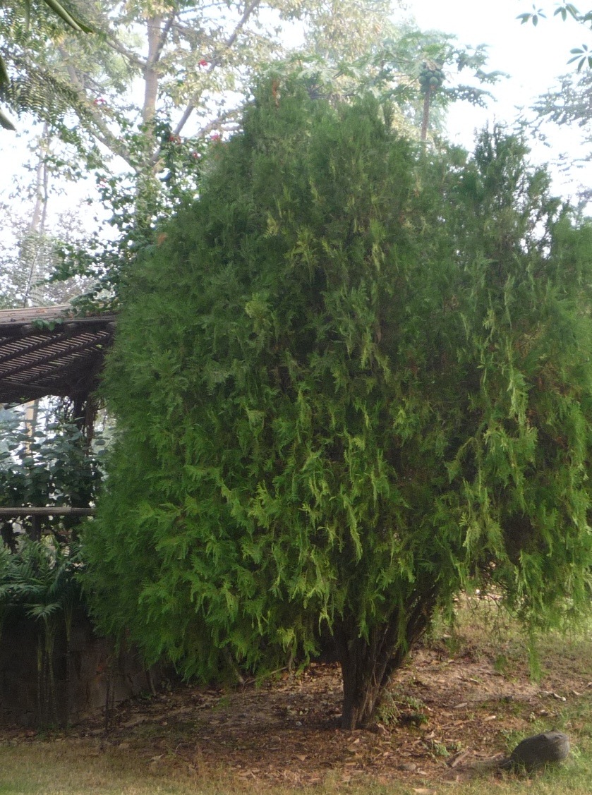 Evergreen conifer tree, grows 15-20 m high leaves flat sprays with scale-like,   triangular scales with a blunt point and arranged in decussate pairs Leaves emit an odor when bruisedcones 15-25 long, round green mature to brown